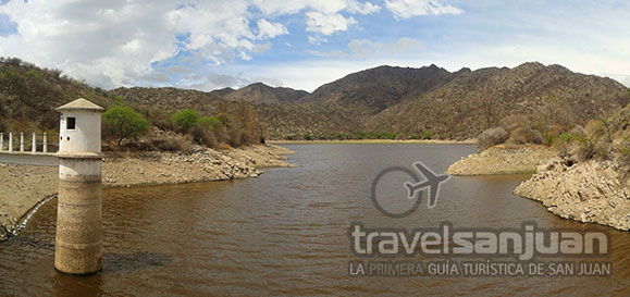 Ubicado a 7 cuadras de la plaza principal ofrece, en sus pacíficas aguas, un lugar ideal para la pesca del pejerrey. Su belleza puede ser apreciada en su totalidad desde el mirador de la Hostería Valle Fértil, construida sobre una loma a orillas del dique. Además puede realizarse en torno al dique, el denominado “Trekking del Perilago” que consiste en una caminata de aproximadamente 2 horas con varias paradas técnicas para observación de flora y fauna.